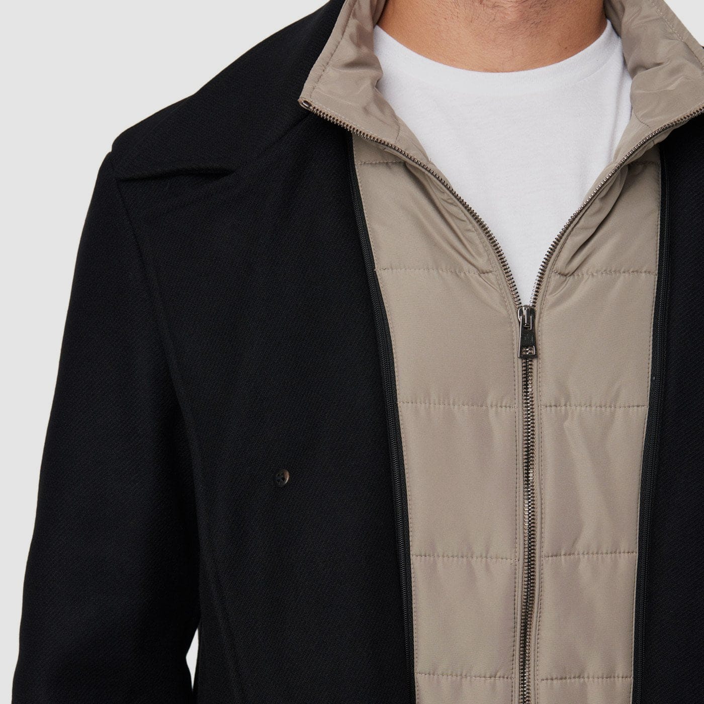 An elevated take on a classic, this wool weatherproof jacket in Italian fabric features a detachable nylon windbreaker