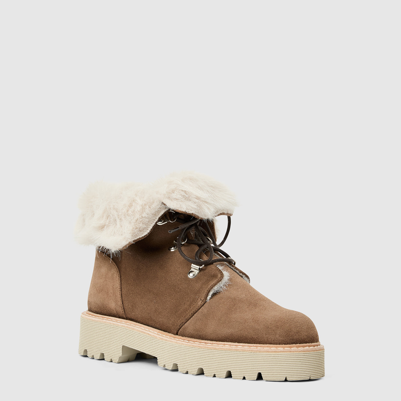A customizable cuff makes the Eva a truly remarkable bootie - wear yours up or rolled over depending on your pant length. Modeled after hiker styles, they’re crafted from water-resistant suede that’s designed to withstand the elements and is fully lined in faux shearling for added warmth. A lug sole provides superior traction while the lace closure allows you to adjust the fit.