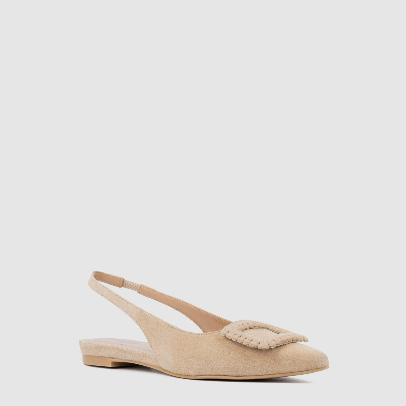 A refined pointed-toe silhouette and woven square accent elevate our Janetta Slingback—a desk-to-dinner style essential. Designed in dress suede as well as a sparkling metallic leather version, its elastic strap on back ensures ease of wear.