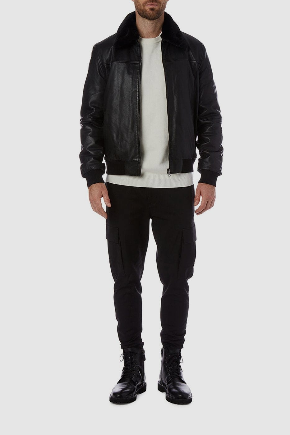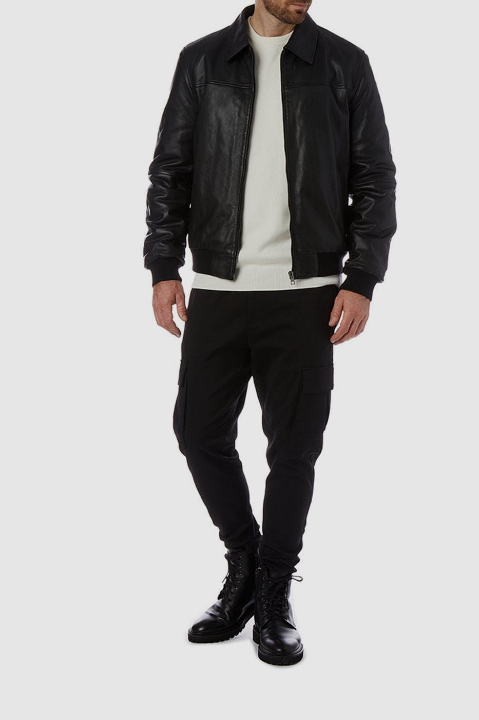 Expertly crafted in premium leather, this coat is a staple in any wardrobe. Features a zipper closure and 2 pockets.