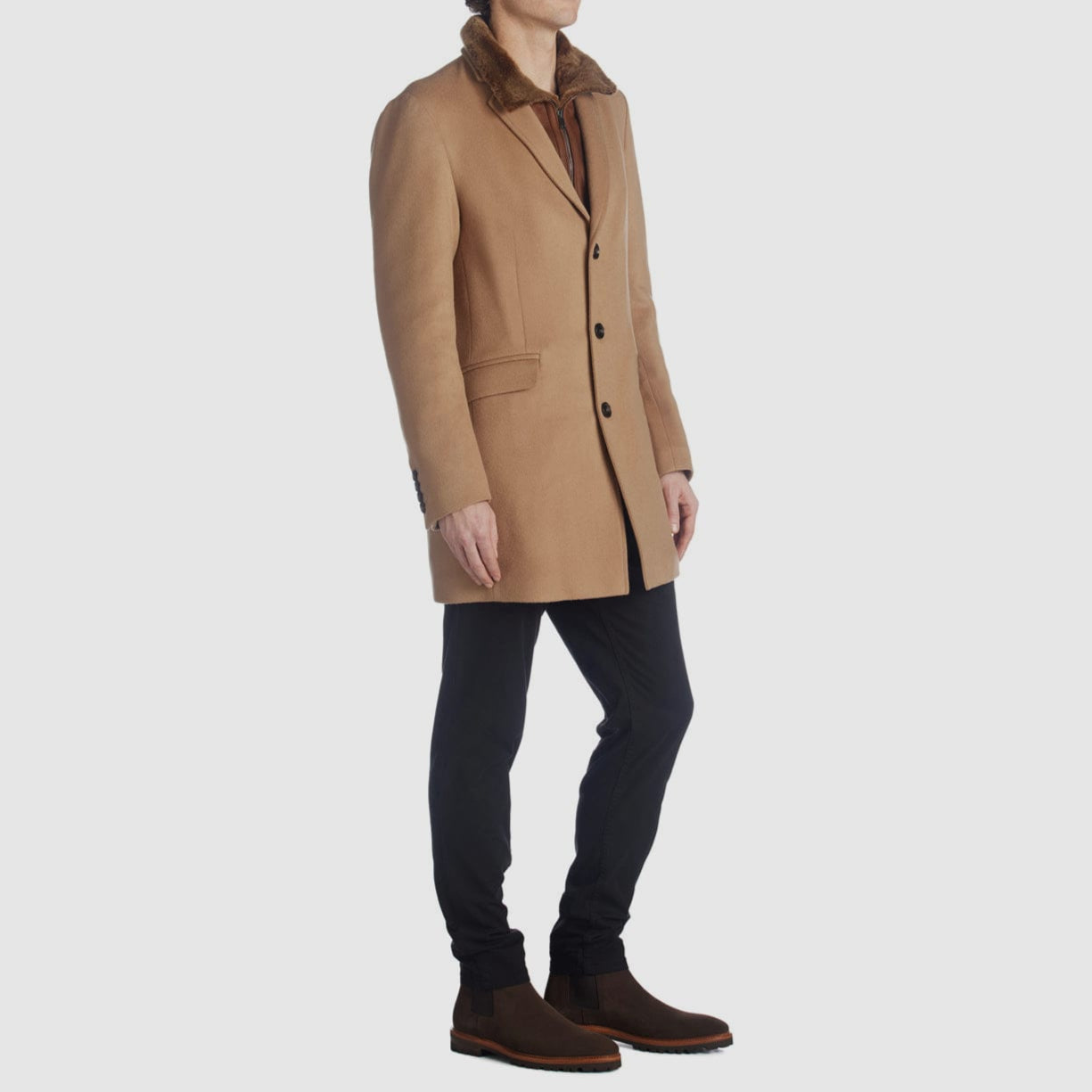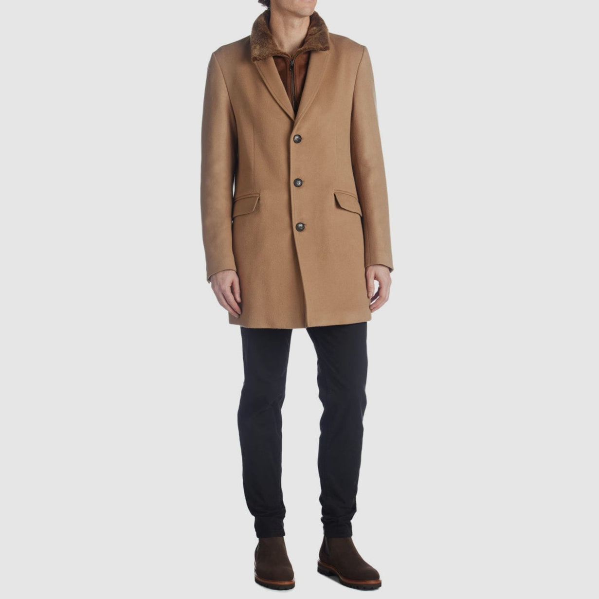 Shearling lining, with a detachable vest, adds warmth to our timelessly tailored Lorenzo Coat, crafted in a wool/cashmere blend. A button/zipper closure and double pockets complete the look, which pairs perfectly with our men’s glove collection.