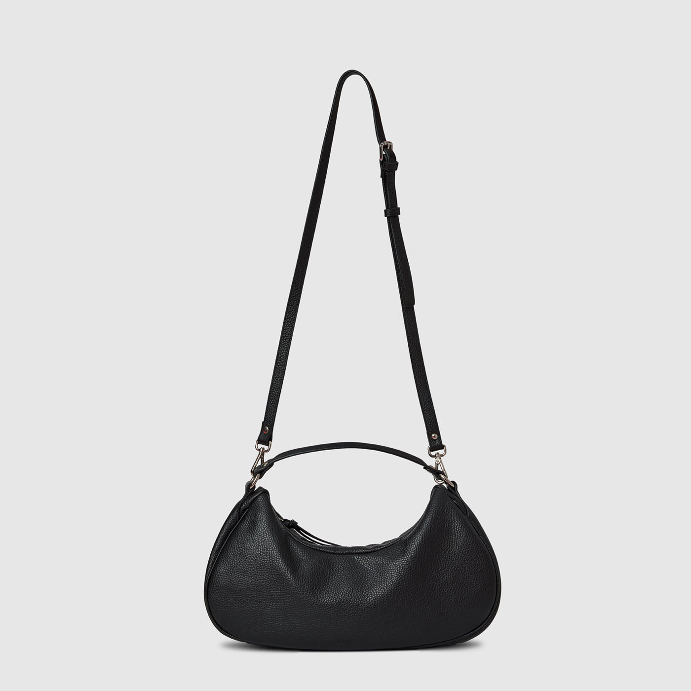 The Luna Crescent Bag by Aquatalia is a refined, sculptural handbag that blends understated luxury with modern minimalism. Crafted from supple pebbled leather, it features a curved, crescent-shaped silhouette that rests naturally against the body for effortless wear.