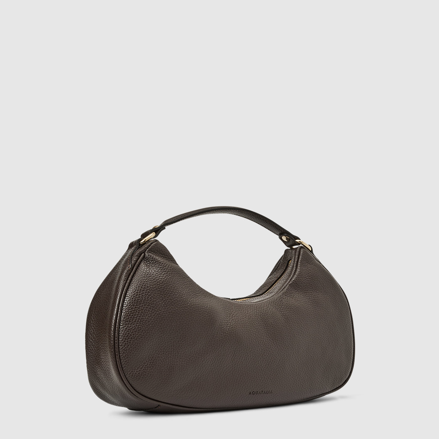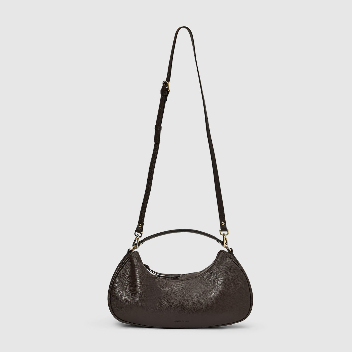 The Luna Crescent Bag by Aquatalia is a refined, sculptural handbag that blends understated luxury with modern minimalism. Crafted from supple pebbled leather, it features a curved, crescent-shaped silhouette that rests naturally against the body for effortless wear.