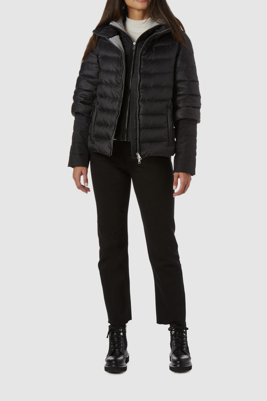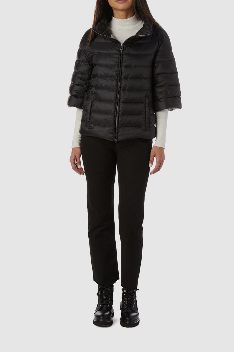 Made from Italian fabric and genuine down filling, this luxurious puffer jacket features a removable liner with a zipper and snap closure.
