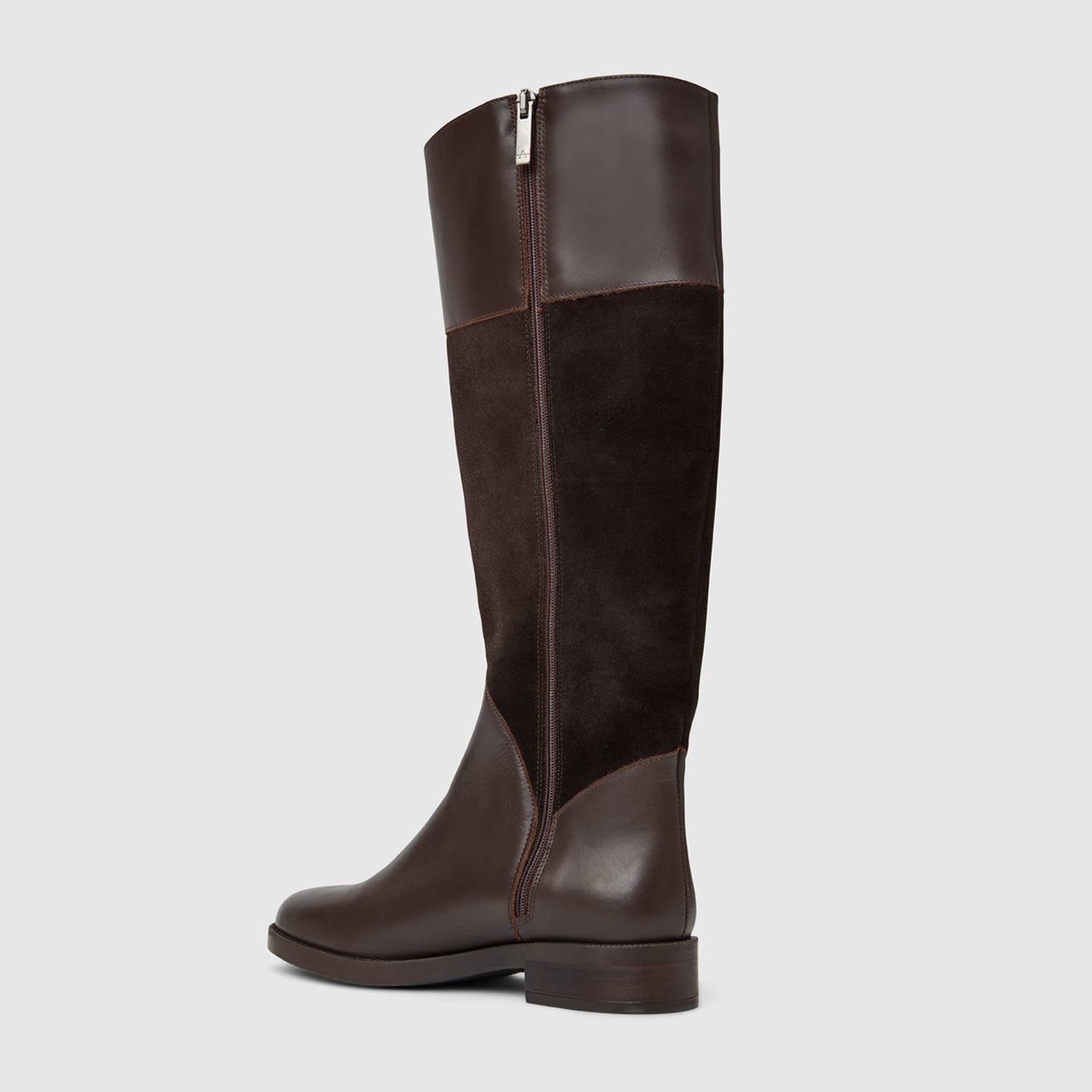 The Regina boots enhance a classic riding style with contrasting materials that create unique textural interest. Made from monochromatic panels of water-resistant leather and suede, they’re set on comfortable block heels and have smooth rounded toes. The thermal lining ensures your feet stay cozy in all conditions.