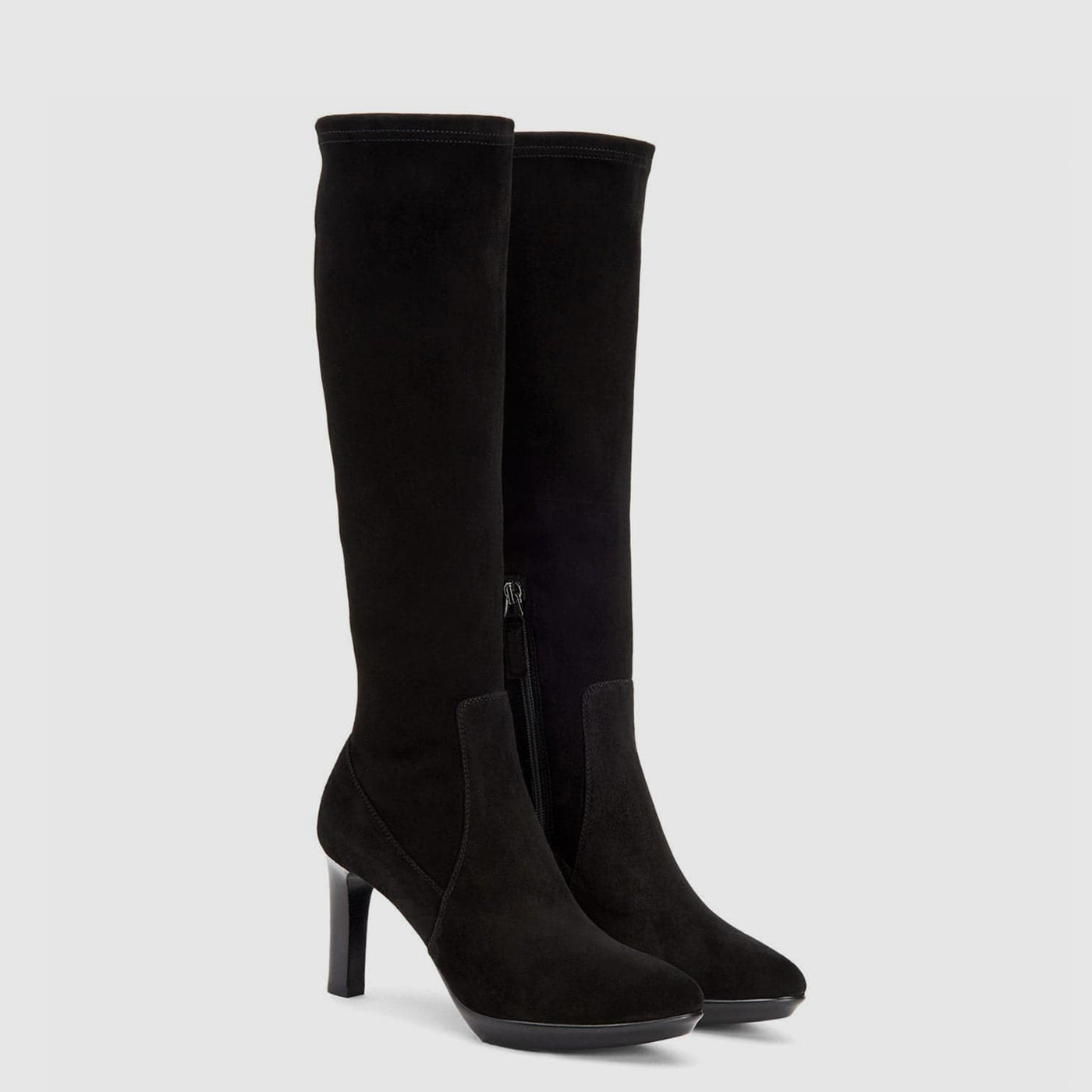 Together, a hint of stretch and flexible platform soles bring ease of movement and total comfort to the Rhumba tall boot. Crafted in soft suede, it features an almond-toe silhouette and stacked heel. Designed in a chic choice of neutral hues, it’s a standout style to mix and match.
