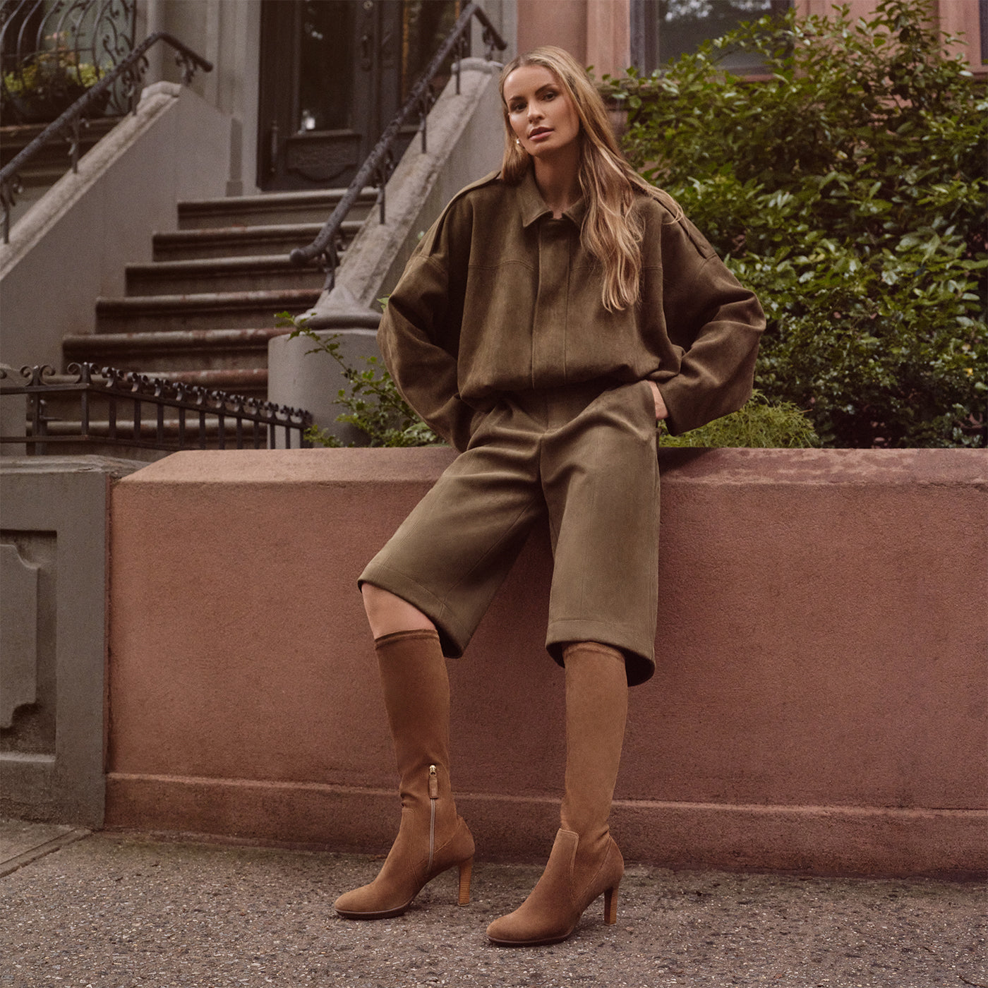 Together, a hint of stretch and flexible platform soles bring ease of movement and total comfort to the Rhumba tall boot. Crafted in soft suede, it features an almond-toe silhouette and stacked heel. Designed in a chic choice of neutral hues, it’s a standout style to mix and match.