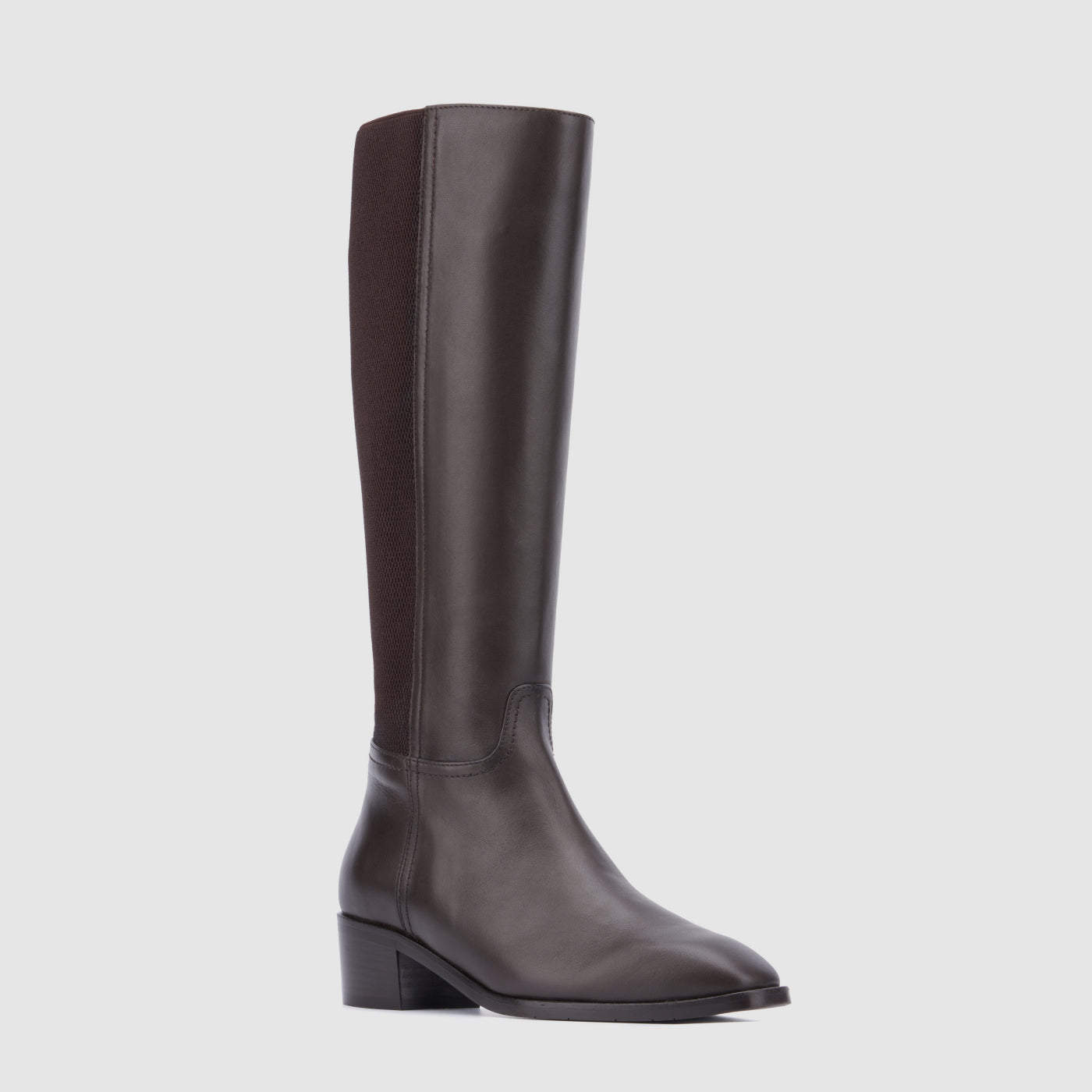Thanks to an elastic panel on back, the Ricarda boot brings ease of movement; at the same time, our signature lining ensures breathability. Beyond comfort, timeless style defines this look, designed in calf leather or soft suede with a stacked heel and square-toe shape. Ideally suited for dresses and skirts, whether at the office or on weekends.