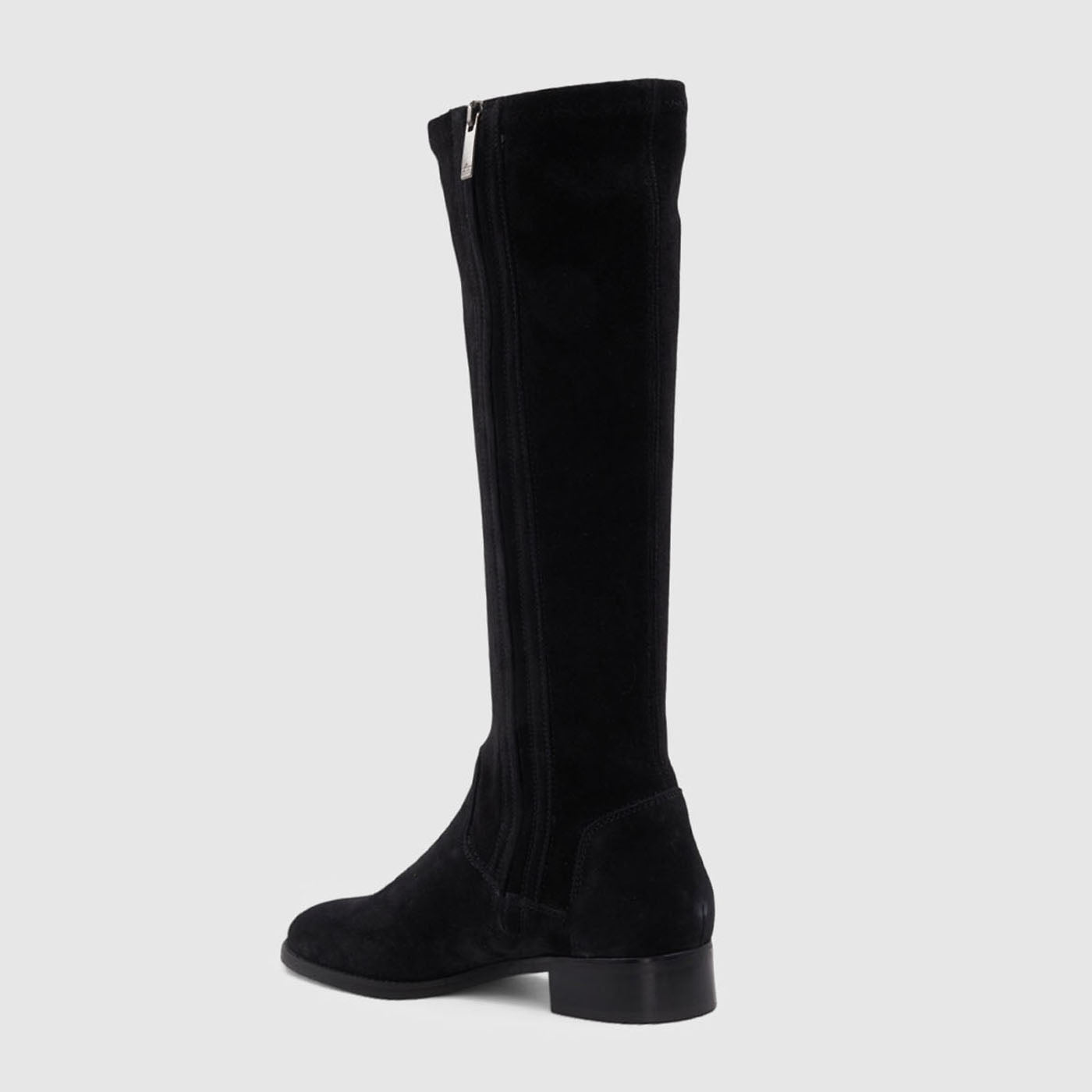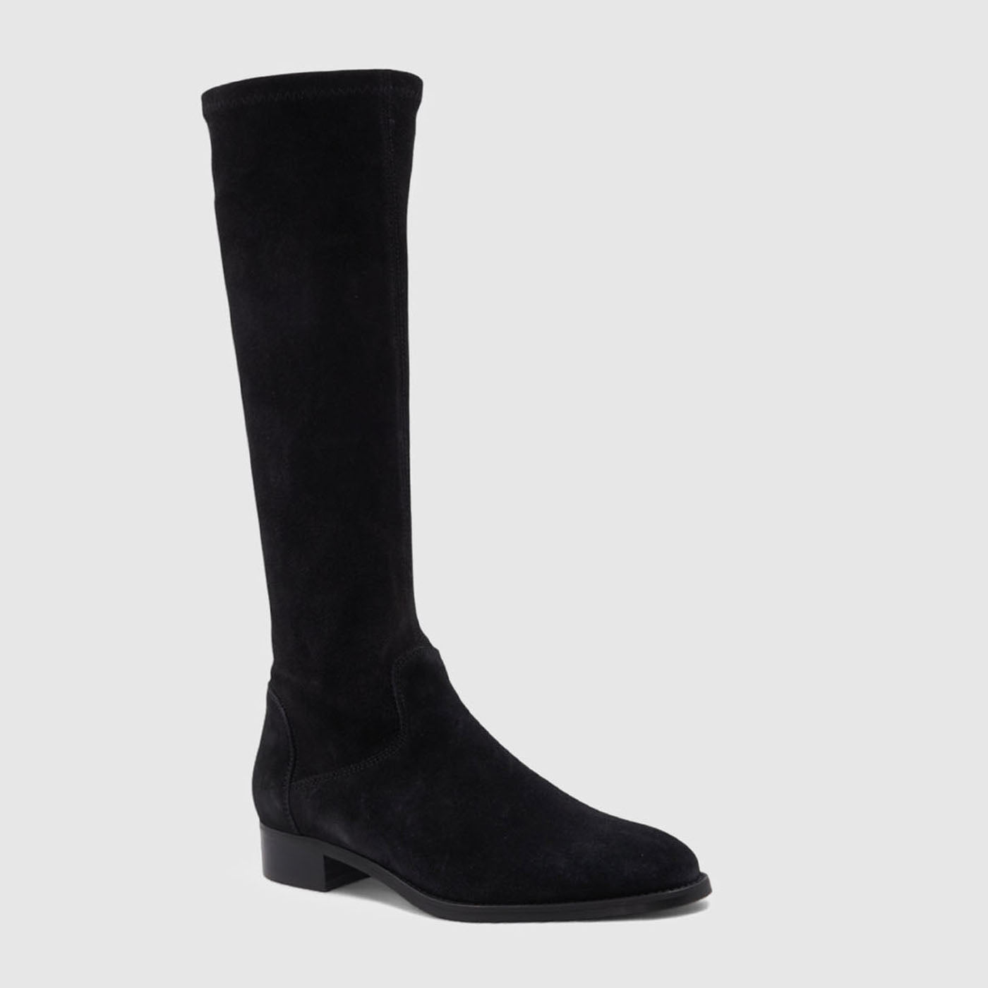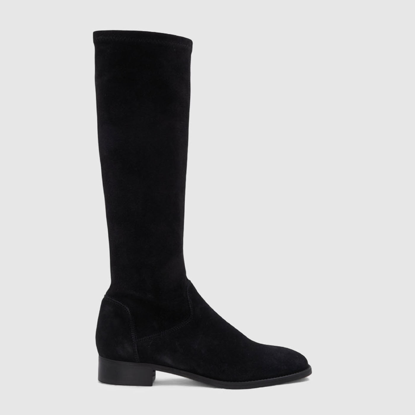 Unique to you, the Sabrena boots are crafted from soft water-resistant suede that stretches to mold to the shape of your leg. Equally functional and elegant, they feature a thermal lining for added warmth and block heels that provide comfortable lift. The inside zipper ensures easy on and off.