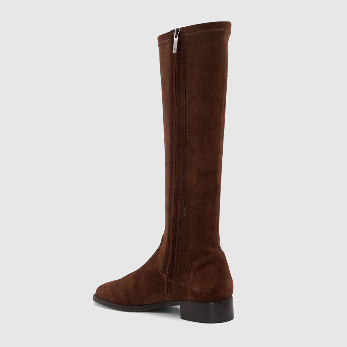 Unique to you, the Sabrena boots are crafted from soft water-resistant suede that stretches to mold to the shape of your leg. Equally functional and elegant, they feature a thermal lining for added warmth and block heels that provide comfortable lift. The inside zipper ensures easy on and off.