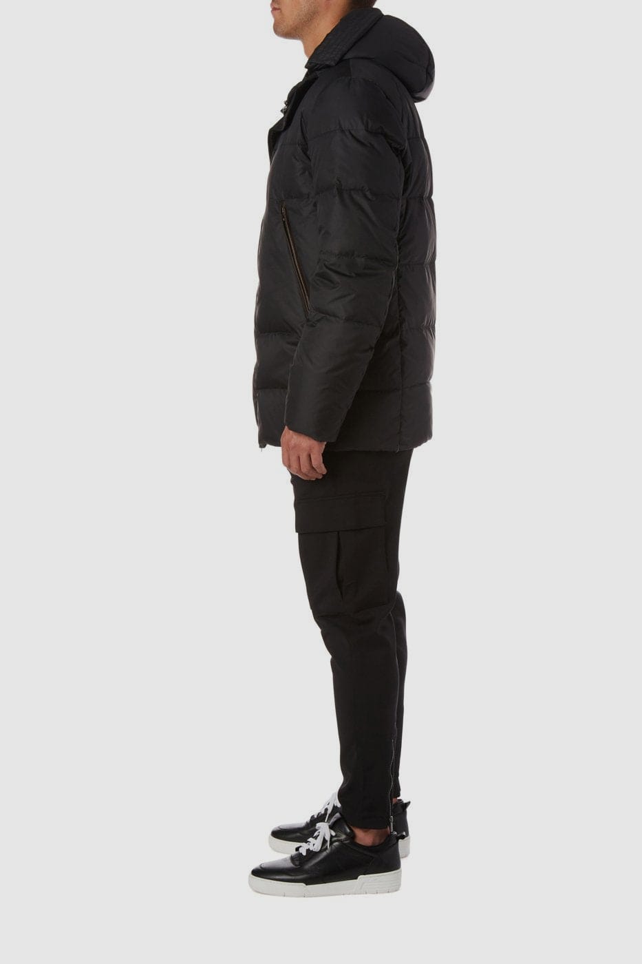 Expertly crafted in premium nylon, this jacket has a hood and features a zipper closure and 2 zipped pockets.